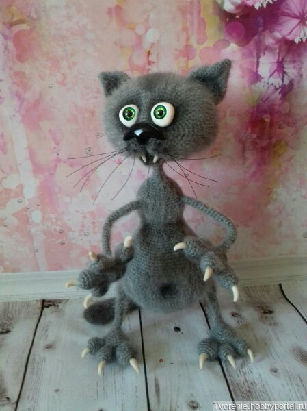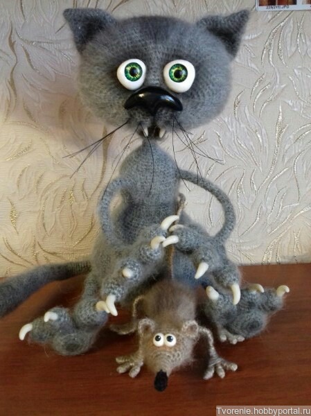 Кот Люцифер связан из ангоры рост 28,5 см. без ушек. Внутри проволочный каркас. Ноготки и нос выполнены из пластика. Будет прекрасным подарком для ваших близких. Цена кота с мышкой 3200 руб.Связан по описанию Юлии Шеенко