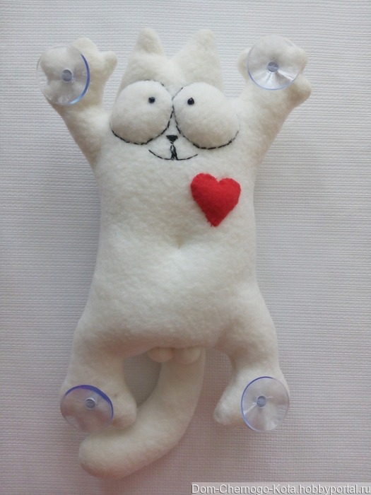 Кот из мягкого флиса с присосками на лапках. Интересное украшение для Вашего автомобиля. Крепится на окошко изнутри и катается вместе с Вами. Если у Вас есть друзья -автомобилисты, то они будут в восторге от такого подарка. Котика также можно прикрепить и на окошко квартиры или офиса, и он будет наблюдать за улицей и радовать прохожих!!! Размер большого котика 27см с хвостом.