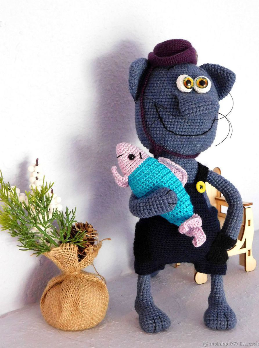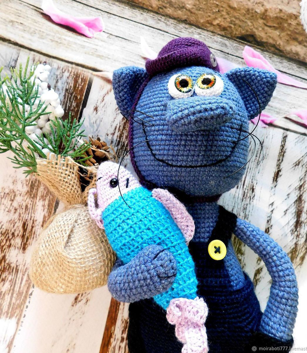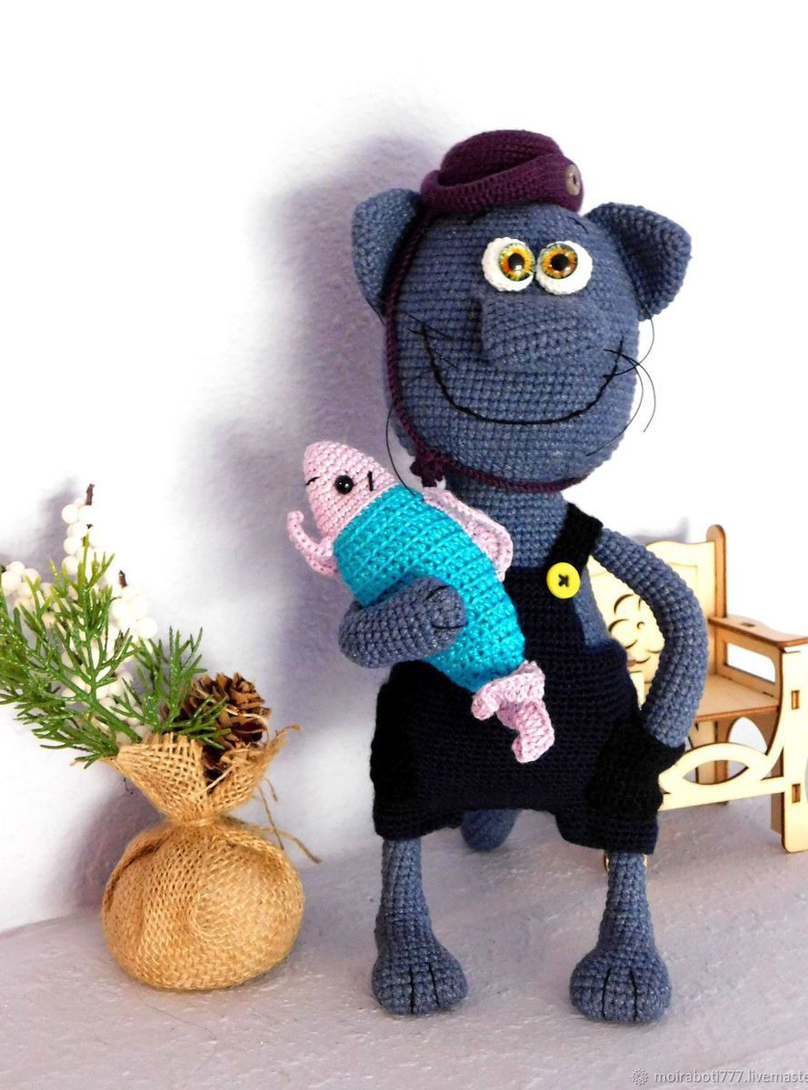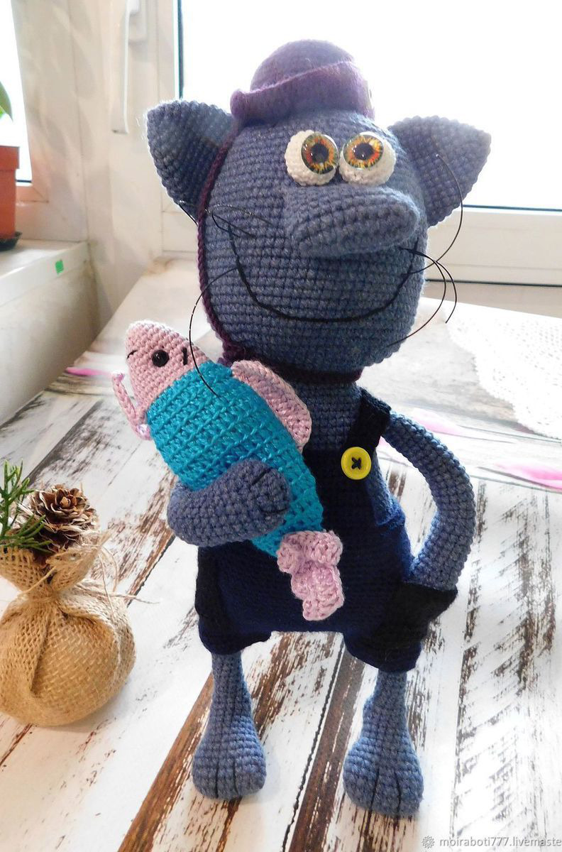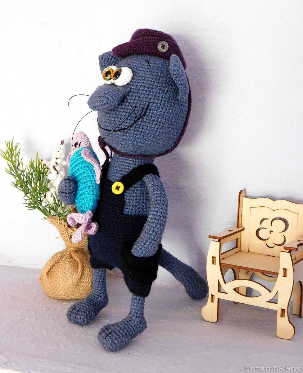 интерьерная игрушка, мягкая игрушка, игрушка в подарок, котик вязаный, игрушка кот, игрушка котик, кот вязаный, игрушка сувенир, кот василий, кот с рыбой