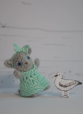 Малышонок-котенок, стесняшка -обояшка, крохотулька, нежнейшее тепленькое создание, чудо на ладошке, так и хочется его тискать, одевать, фотографировать). Лапочки мягкие, может сидеть, стоит , опираясь на хвастик. Лапки двигаются, но не фиксируются в положениях. В комплекте коробка Собянина), люлька, подушечка, одеяльце, купальничек, шляпка, два платья, шапочка, снуд, берет, бактус, листочек, повязочки на голову, пальтишко.