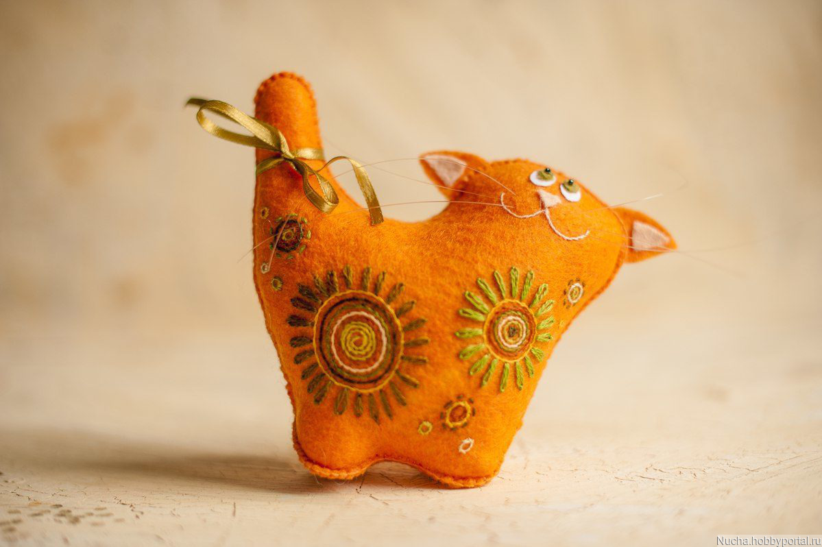 милый фетровый зверь с ручной вышивкой и шикарными усами