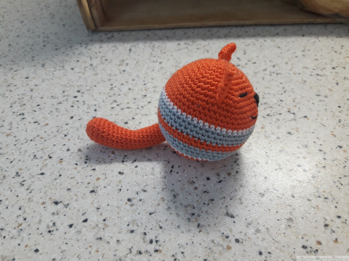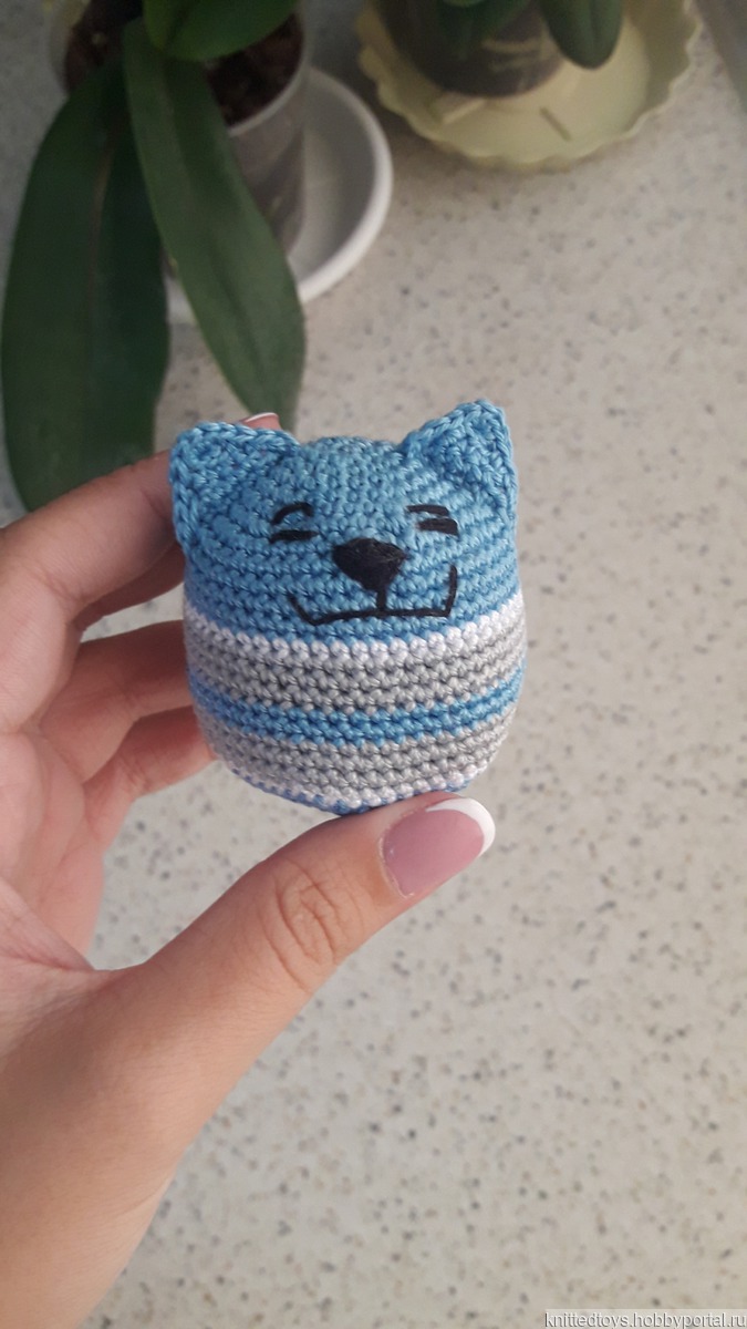 Котик изготовлен из пряжи 100% акрил, мордочка вышита нитками мулине, наполнитель - вата.