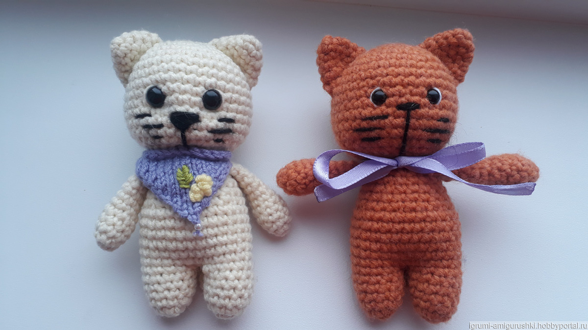 Котики связаны крючком из полушерстяной пряжи или из полухлопковой , глазки на безопасном креплении, размер игрушки 11 см.В наличии 2 малыша.