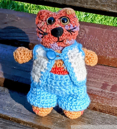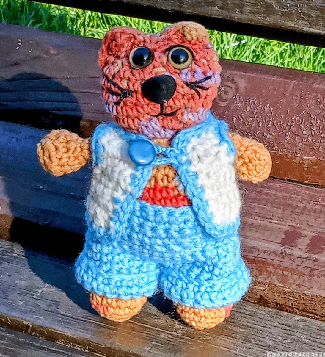 вязаная игрушка, кот, котик, котик вязаный, кот в одежде