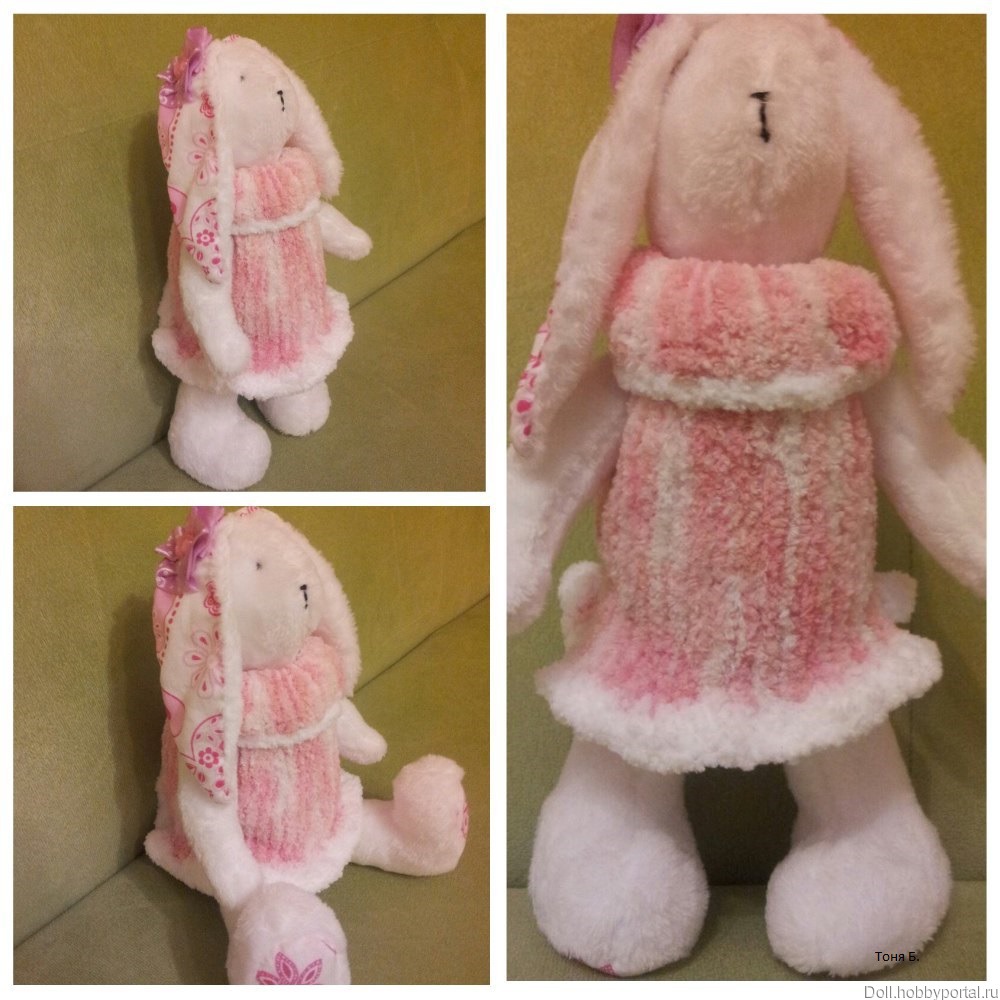 Кролик из эко меха, в вязаном платье. Очень мягкая и милая игрушка для детей с 0 лет. Абсолютно безопасные материалы. Возможен повтор