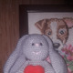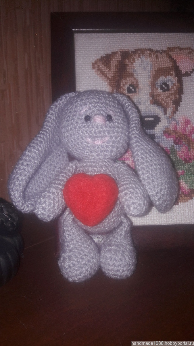 Кролик связан крючком, сердечко сваляно из искусственной шерсти.