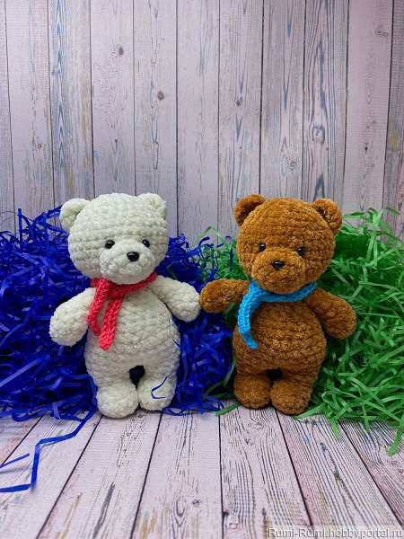 Связаны из плюшевой гипоаллергенной пряжи, наполнены холофайбером, пластиковые глазки и носики на безопасном креплении