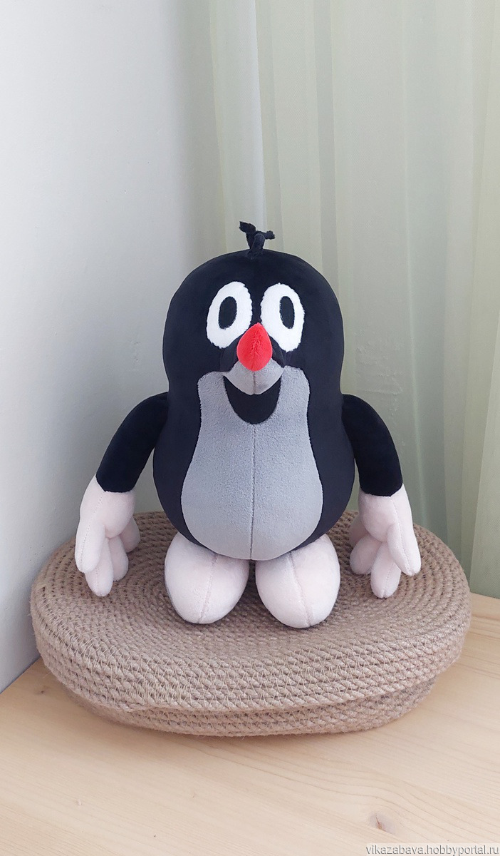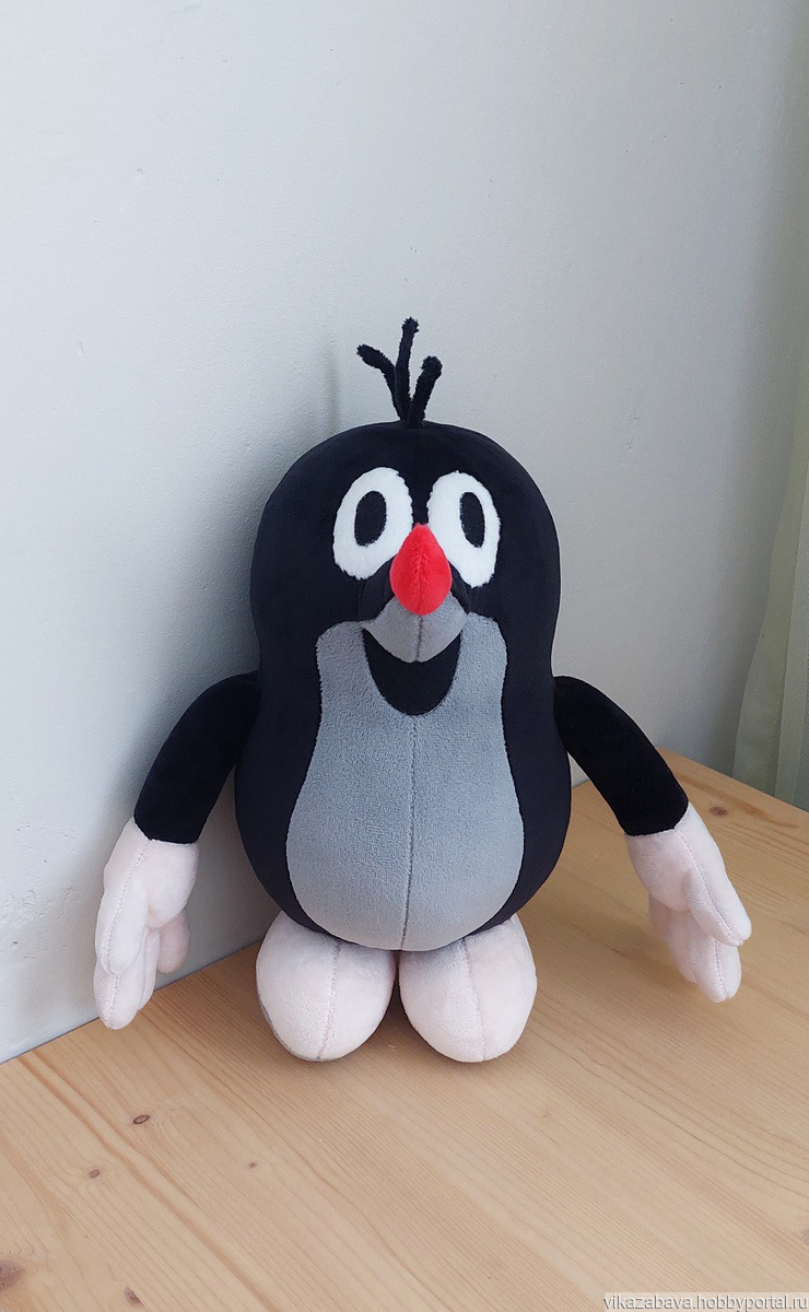 Мой Кротик сшит из плюша, наполнен синтепухом. Очень милый и тактильно приятный получился мультяш.