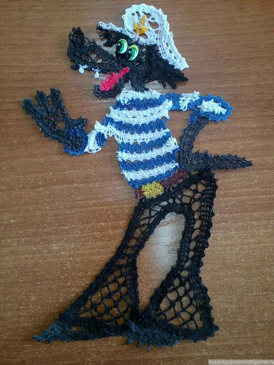Сплетённый на коклюшках волк из мультфильма.