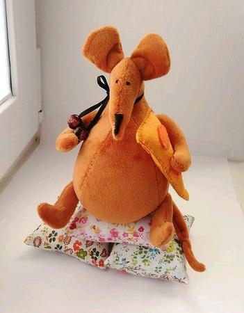 Кто не любит ириски? Эта история не про эту скромняшку Крыску Ириску. В ее бархатном пузике скрывается не мало этой сливочной сладости. Крыска сделана из синтетического плюша. Глазки и носик вышитые.Модница носит украшение из атласной ленты и деревянных бусин. Крыска очень любит подушки, и с ней всегда ее три замечательные думочки из цветного хлопка, украшенные бусинками градиентного жемчуга. Работа полностью ручная, ни одного машинного шва.