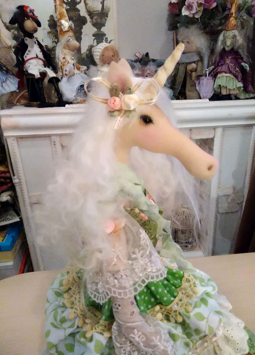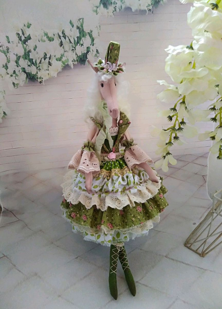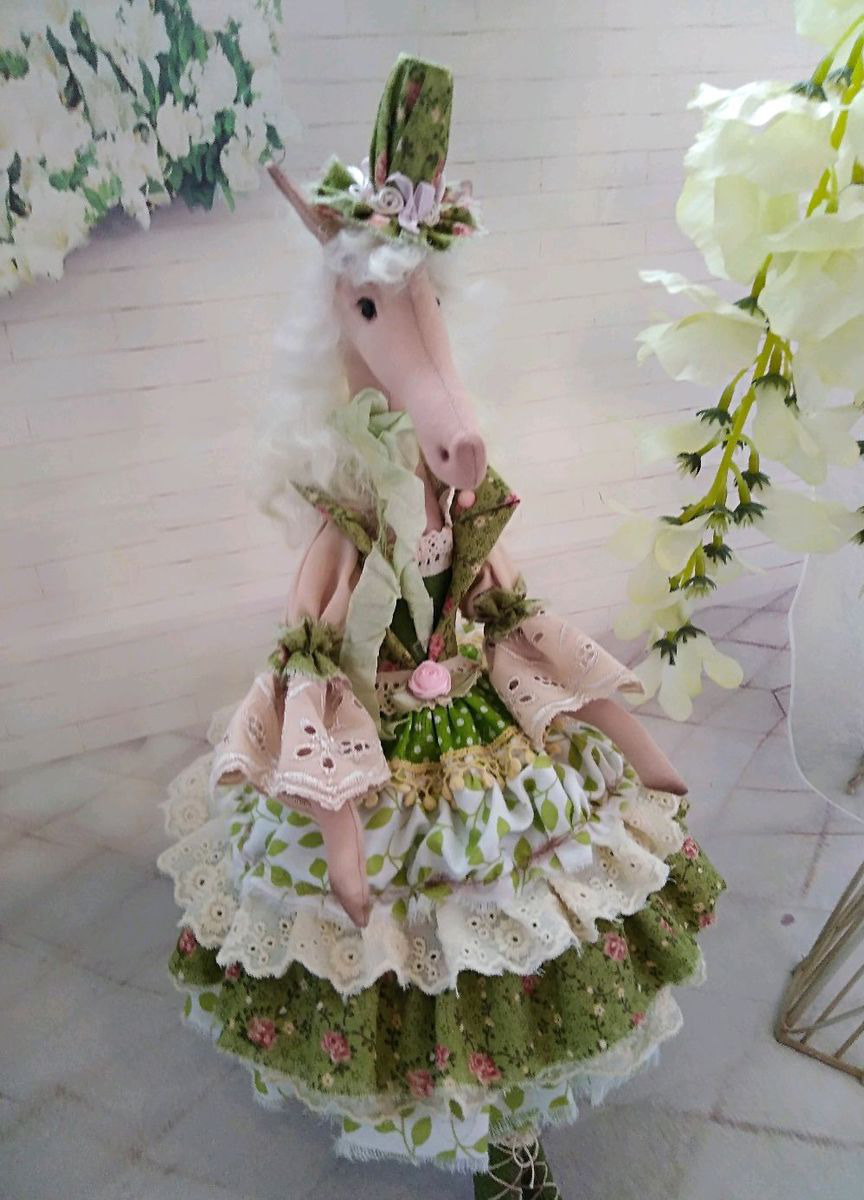 Такая лошадка станет украшением, а может любимицей детей, а может это чей то знак по гороскопу?! А может стать и Единорожкой! Нежная утонченная, сделана из хлопковых тканей, вся в рюшах и кружевах, как и подобает настоящей леди! Мягкая цветовая гамма легко впишется в интерьер! Вы ещё сомневаетесь?! Цвет и наполняемость может быть выбрана вами индивидуально!