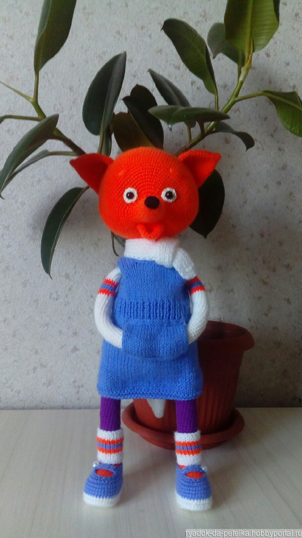 Игрушка связана крючком из полушерсти по МК Ирины Оганян. В шее есть проволочный каркас который не позволяет заваливаться голове в стороны, Глазки на безопасном креплении, носик и бровки вышиты. В качестве наполнителя использован холлофайбер. Шарф, платьице и ботиночки снимаются.