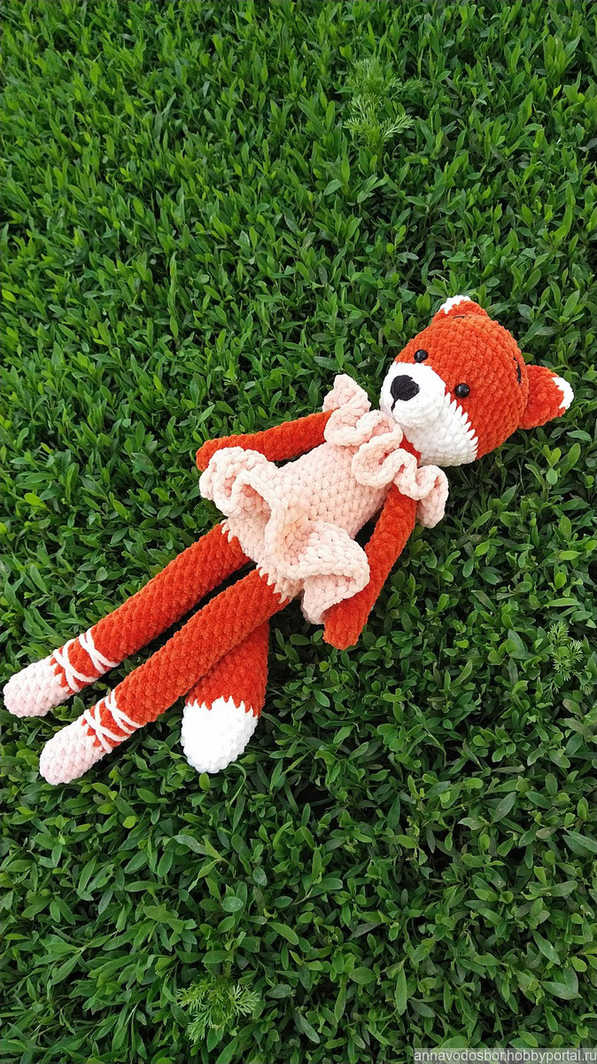 Лисичка-балерина связана из плюшевой пряжи. Рост 35см.Замечательная игрушка для детей, а также как дополнительный элемент для интерьера.