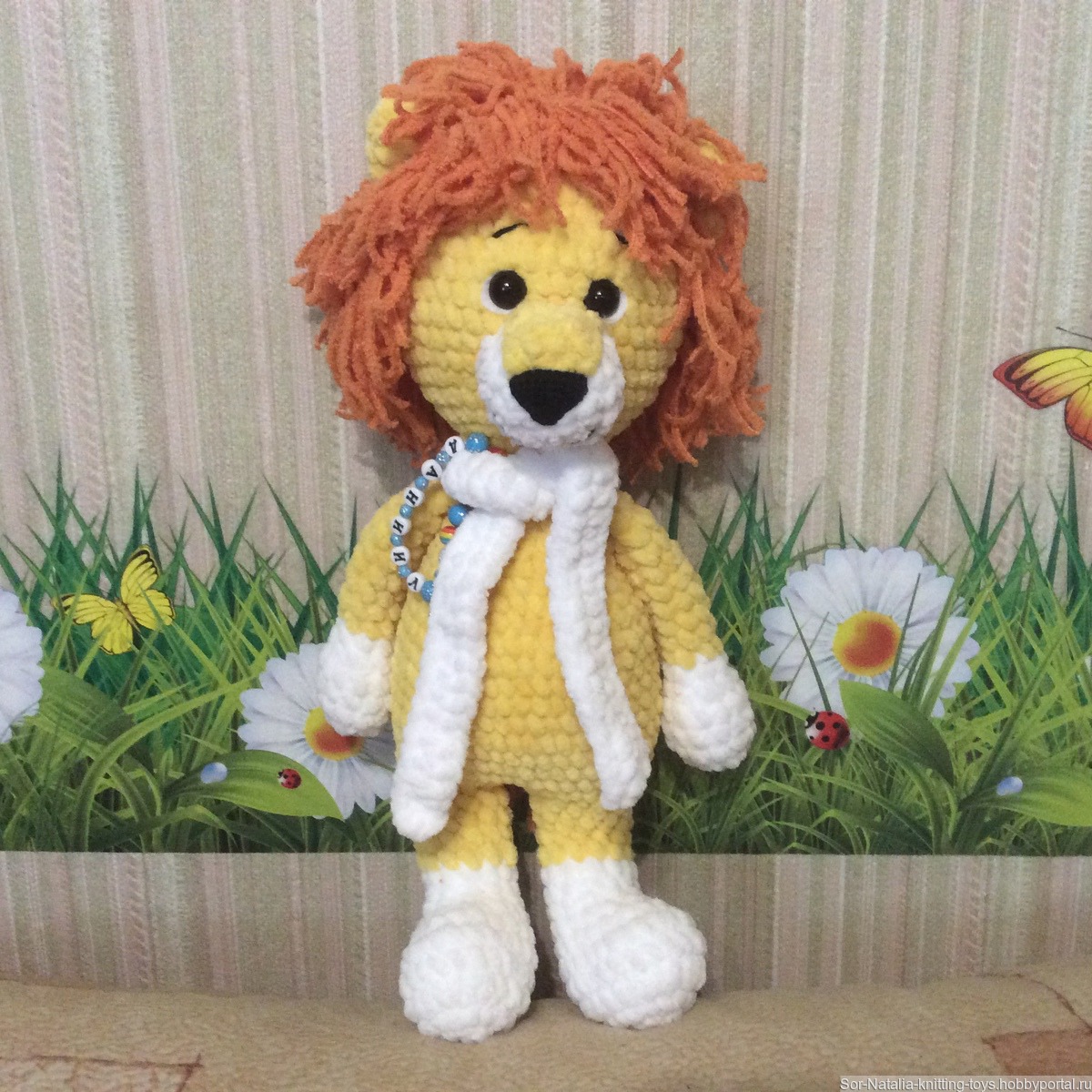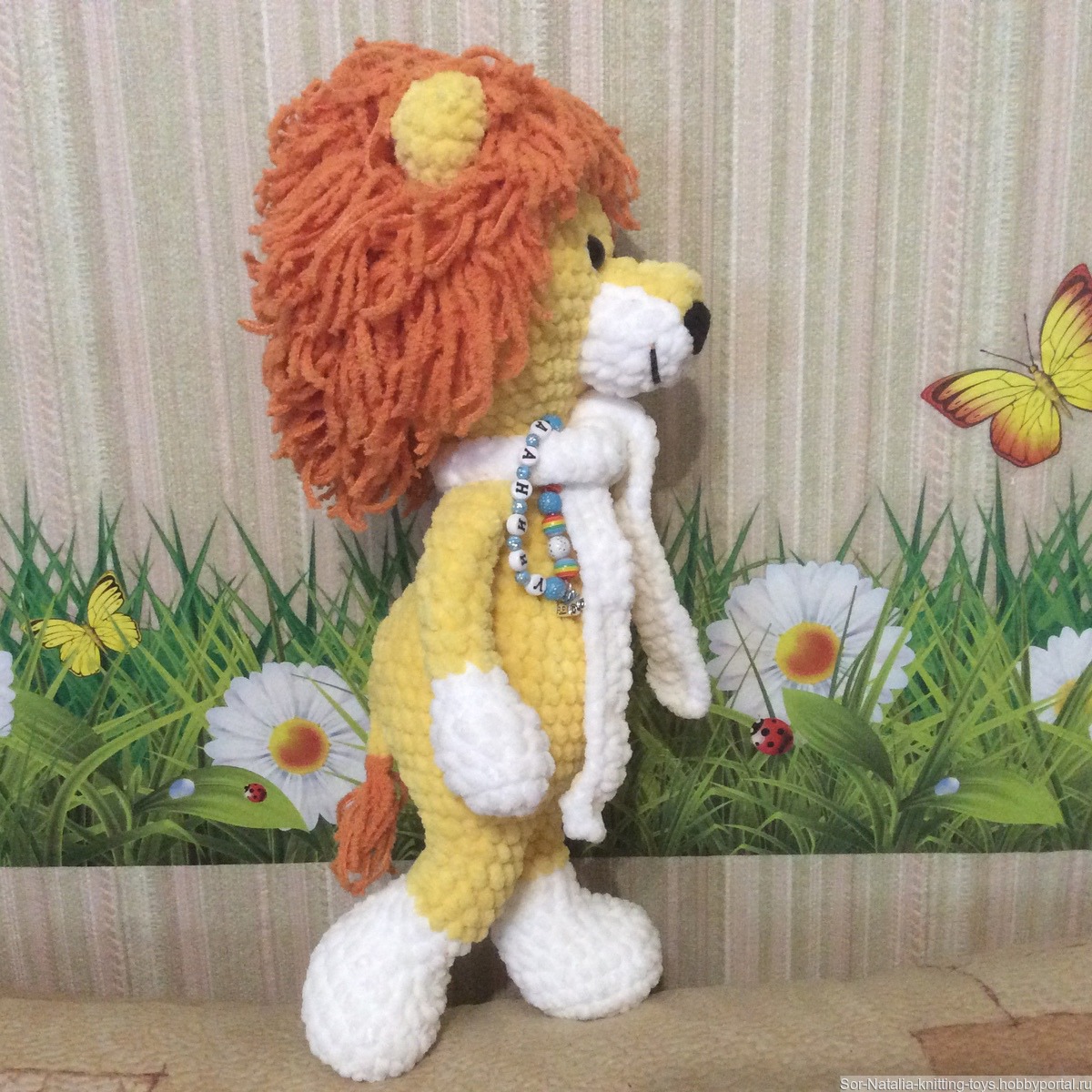 Львёнок. Связан из зефирных ниток, тискательный. Бескаркасный. Высота игрушки 30 см. Глазки на безопасном креплении. Для детей с рождения. Могу сделать как именную игрушку.