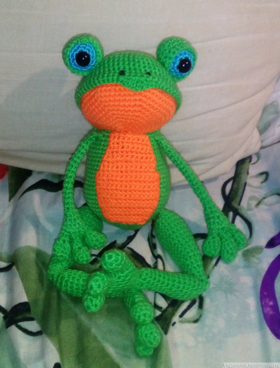 игрушка ручной работы, сувенирная игрушка, лягушка вязаная