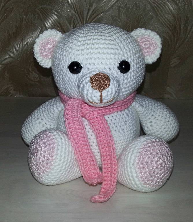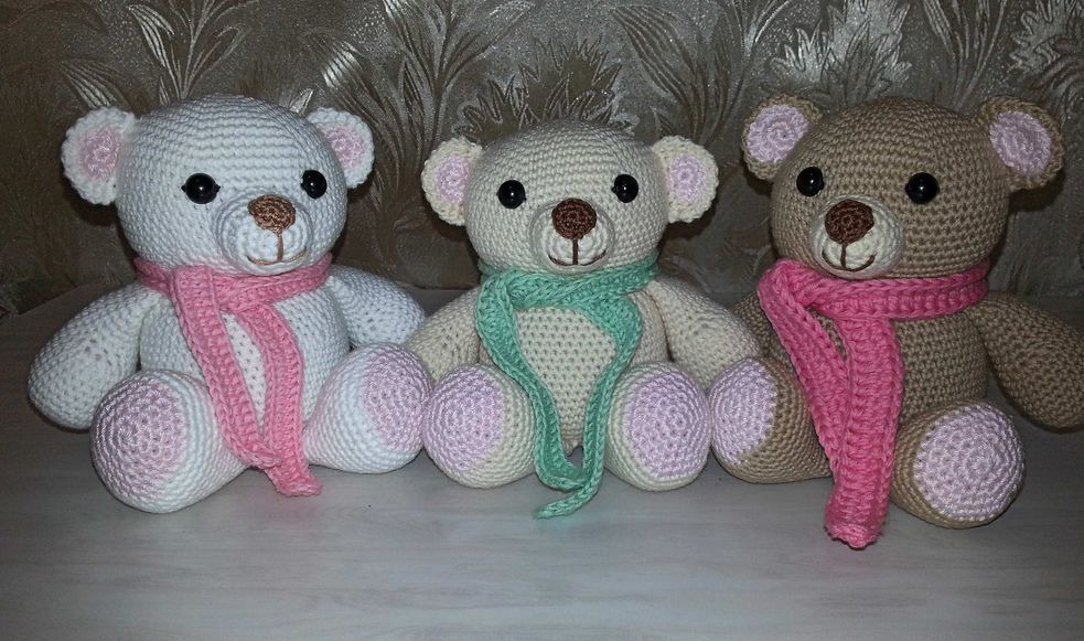 Вязаные игрушки медвежата связаны крючком из 100% хлопка. Очень нежная добрая игрушка. Замечательно подойдёт в качестве подарка детям и друзьям. Цена указана за одну игрушку.