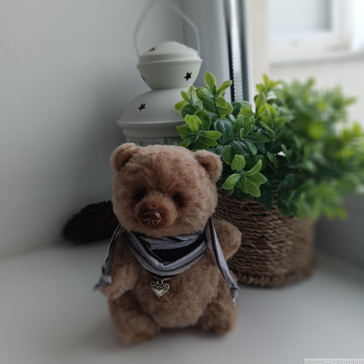 Медвежонок выполнен из искусственного меха. Наполнение : можжевеловые опилки и утяжелитель мелкая морская галька. Нос лепной. Глазки стекло. Тонирование пастелью и масляными красками.