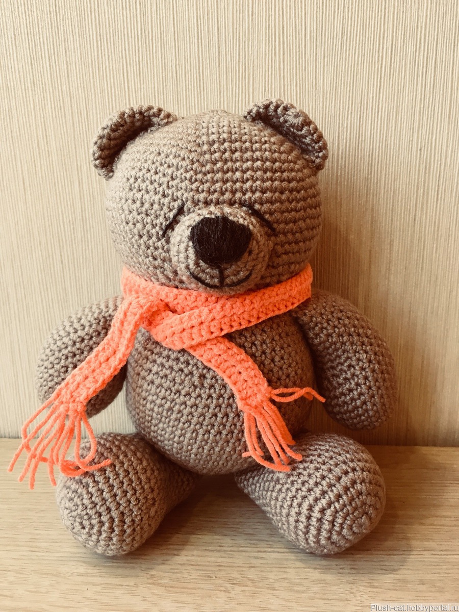 Вязаный мишка, шарфик снимается. Связан из гипоаллергенной пряжи,можно стирать.Возможен повтор в любом цвете.