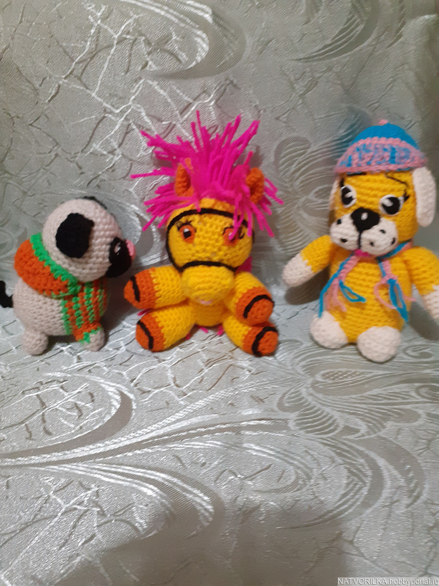 Маленькие собачки и лошадка.