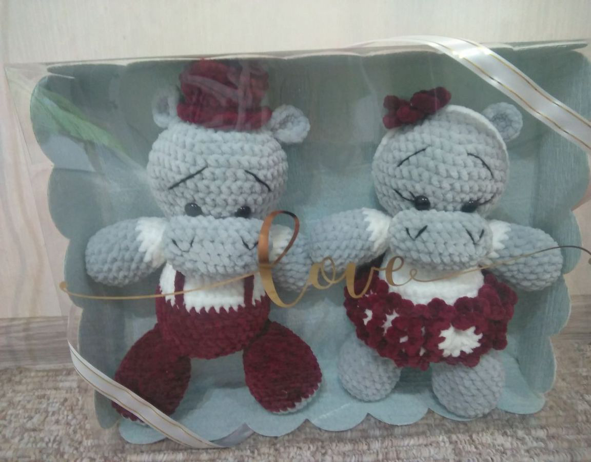 Наша замечательная парочка, которую можно заказать в любой цветовой гамме, цена за 1 бегемотика, пара 1000 рублей . На второй фотографии пример упаковки, цена 100 руб