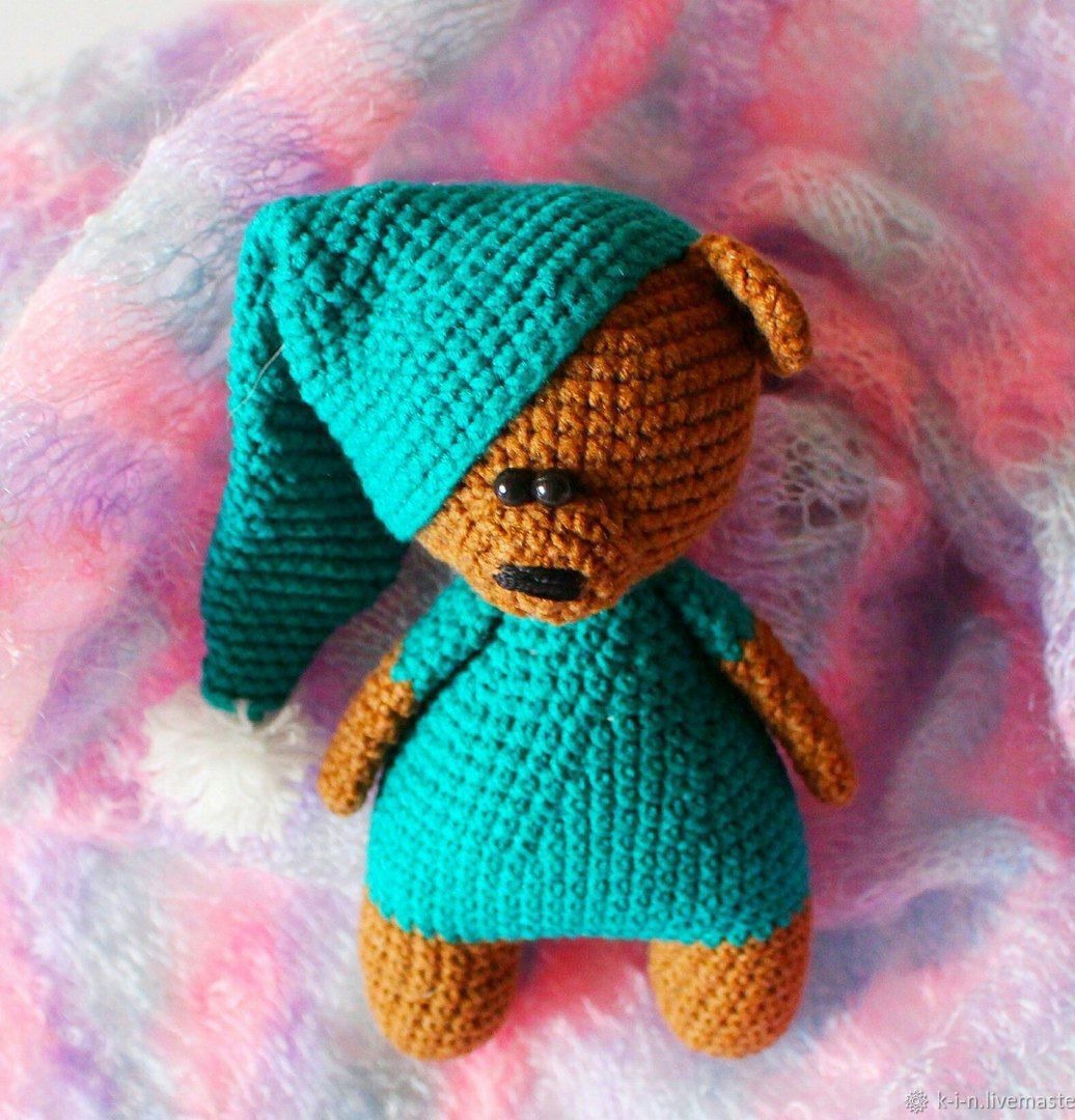 мишка, коричневый, игрушка крючком, мишка крючком, маленький мишка