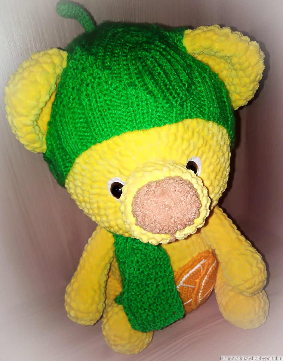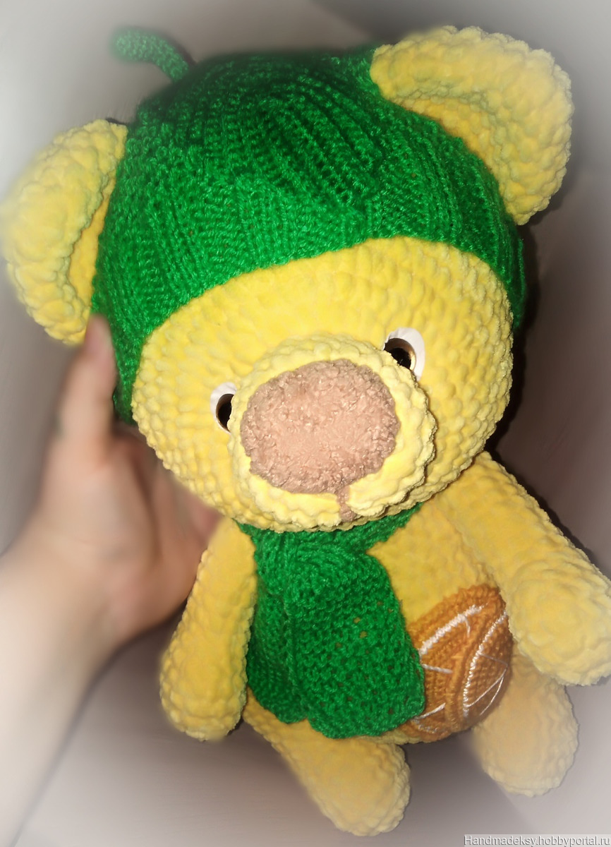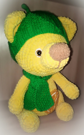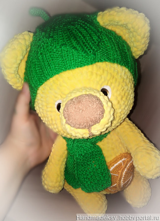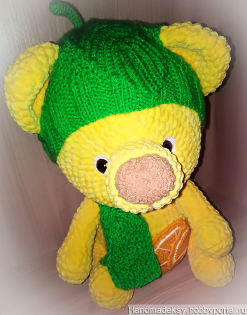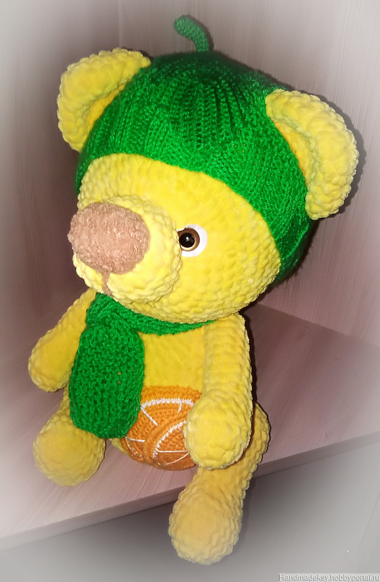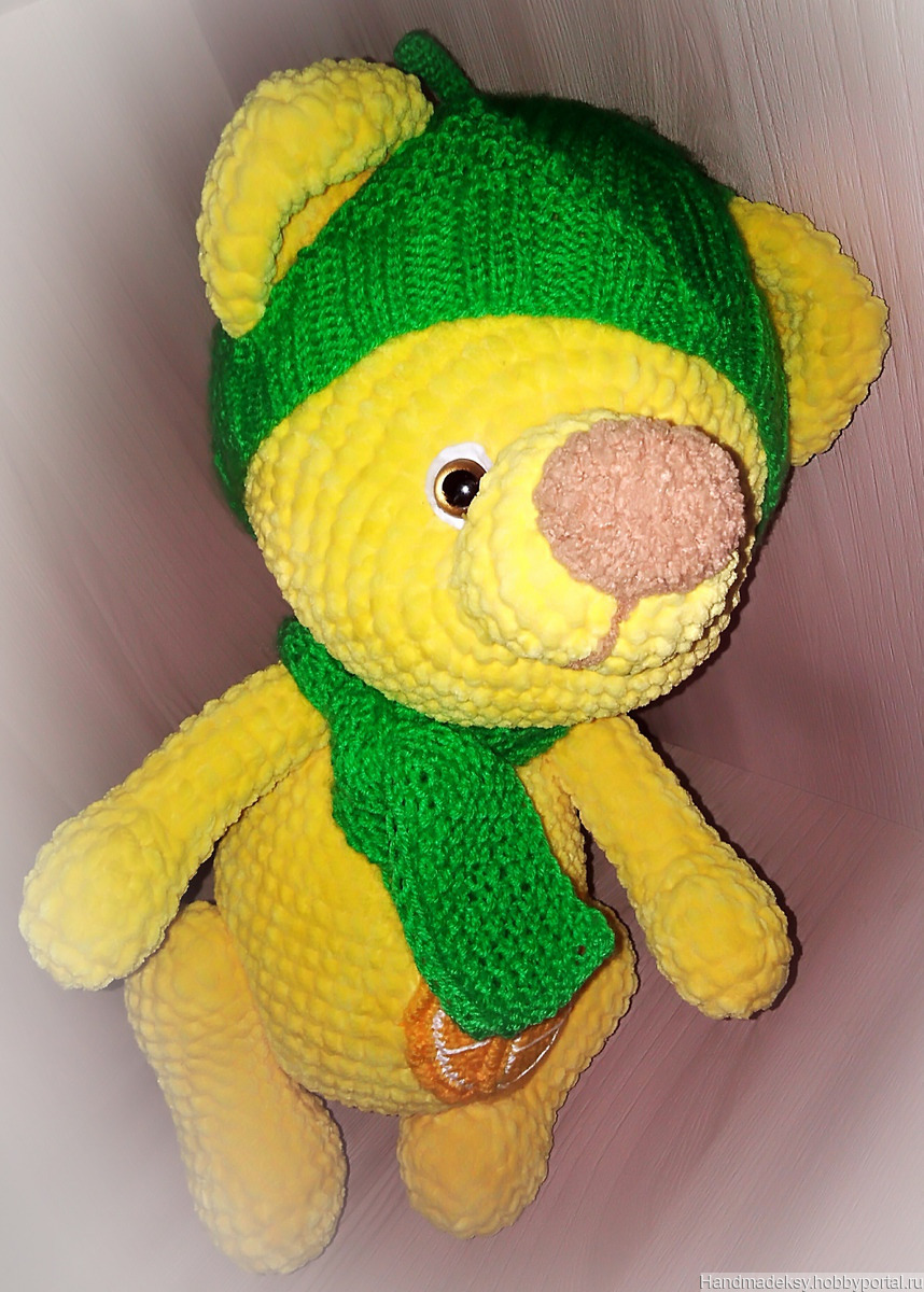 Мишка-лимон чик, ручная работа, ножки подвижные, шапочка, шарфик снимаются!