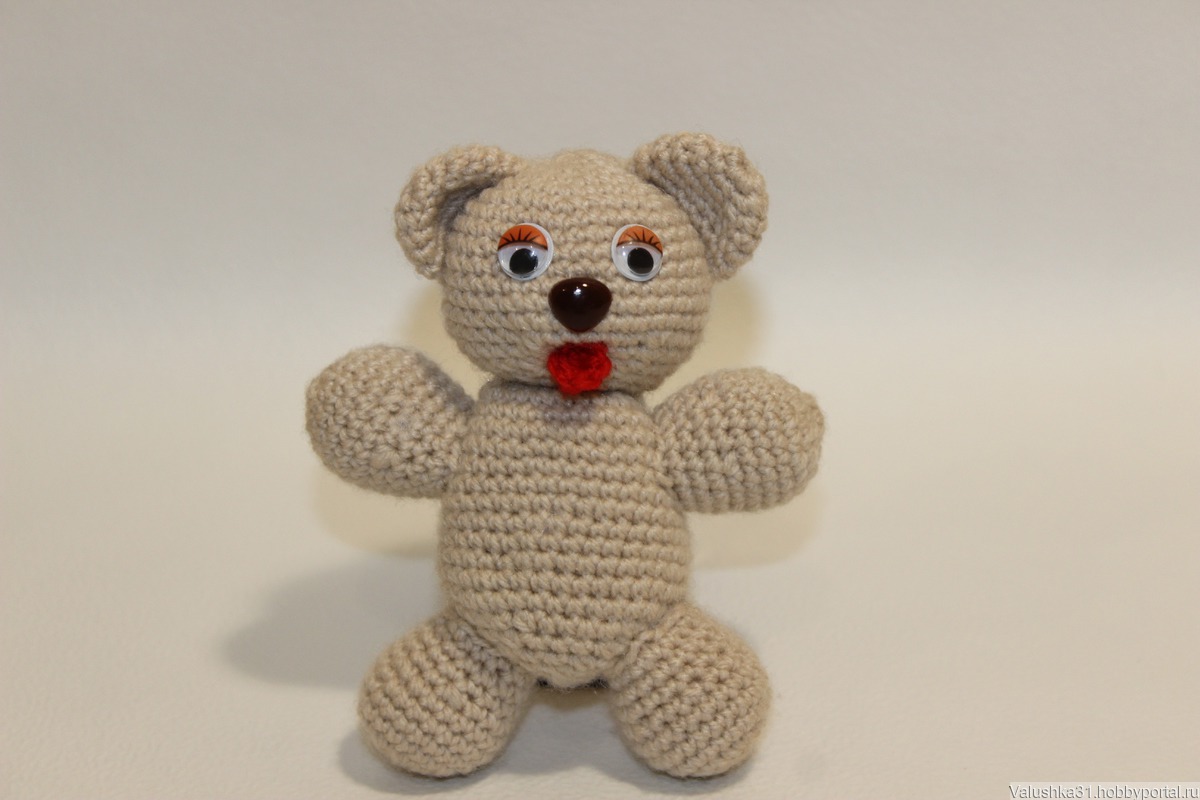 Мишка -игрушка хорошо помещается в ручке ребенка,развивая мелкую моторику.Добрый,очаровательный Мишутка обязательно станет верным другом для вашего малыша.