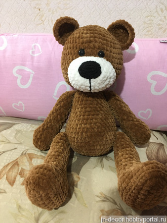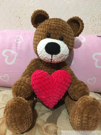 Игрушка мягкая « Мишка с сердечком» связана из плюшевой пряди, наполнитель синтепух.