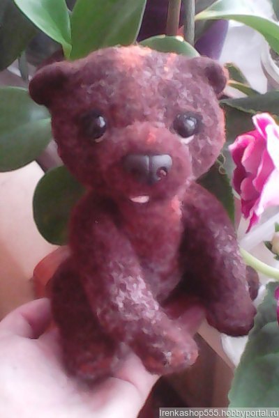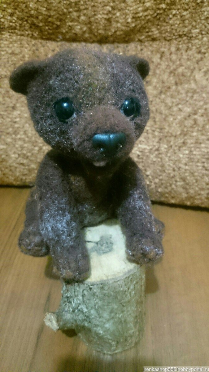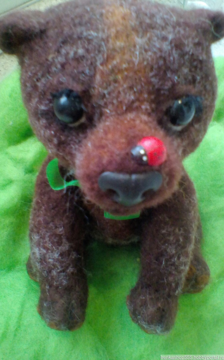 Мишутка Топтыжка) ручной работы игрушка в подарок.Забавный малыш 35 см с подвижной головкой .глазки и носик пластик полностью из натуральной овечей шерсти