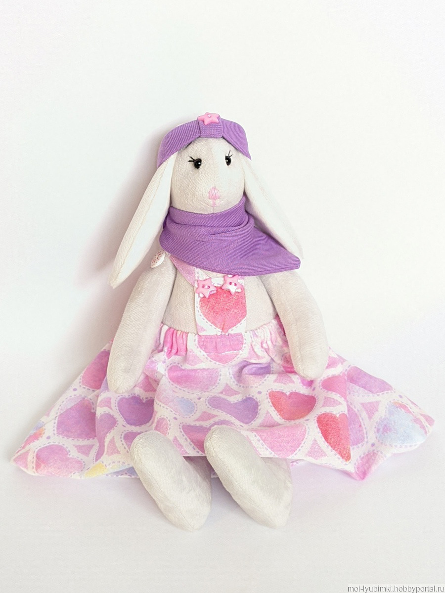 Мягкая игрушка Зайка выполнена из гипоаллергенного меха вельбоа. Лапки подвижные. Одежда съемная. Можно стирать