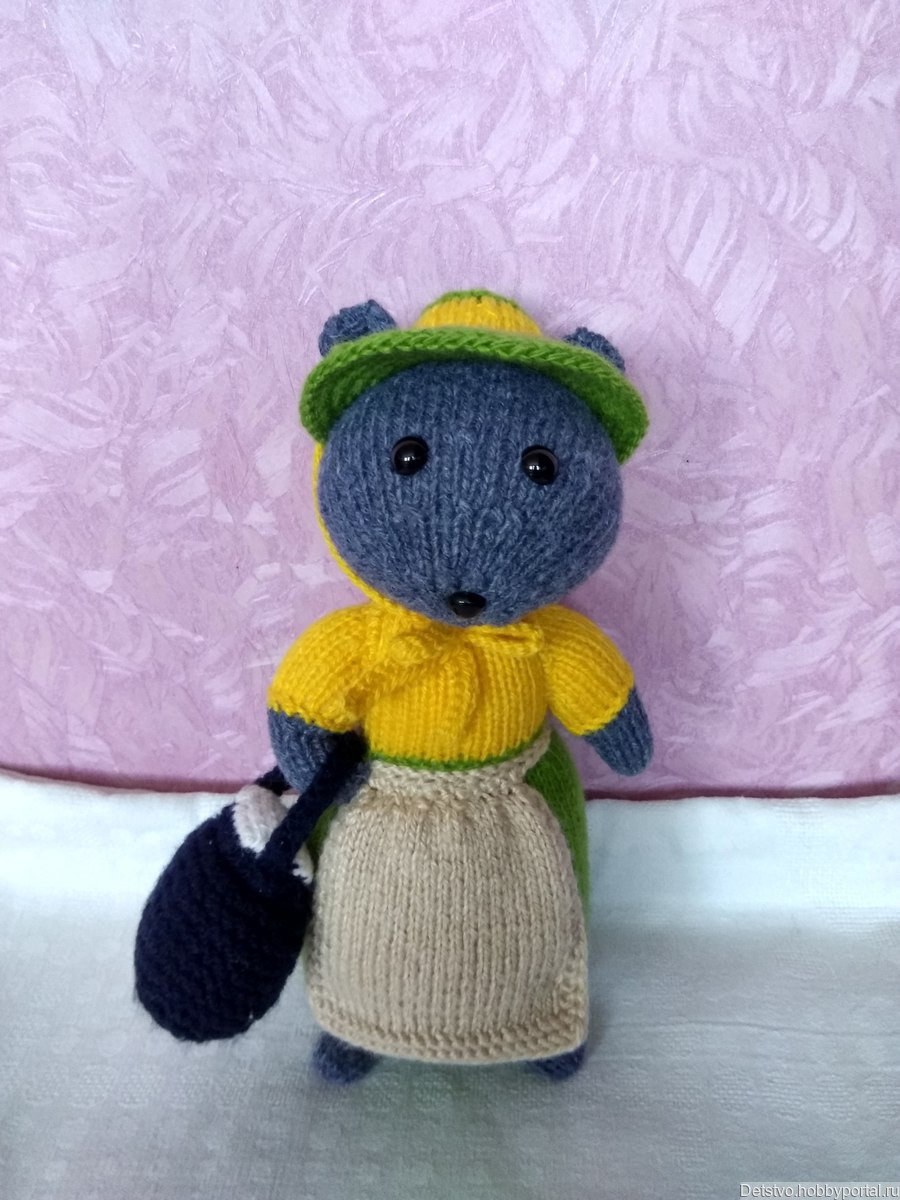 Мышка связана спицами, за основу создания использовался мк Алана Дарта. Это мягкая игрушка, символ 2020года