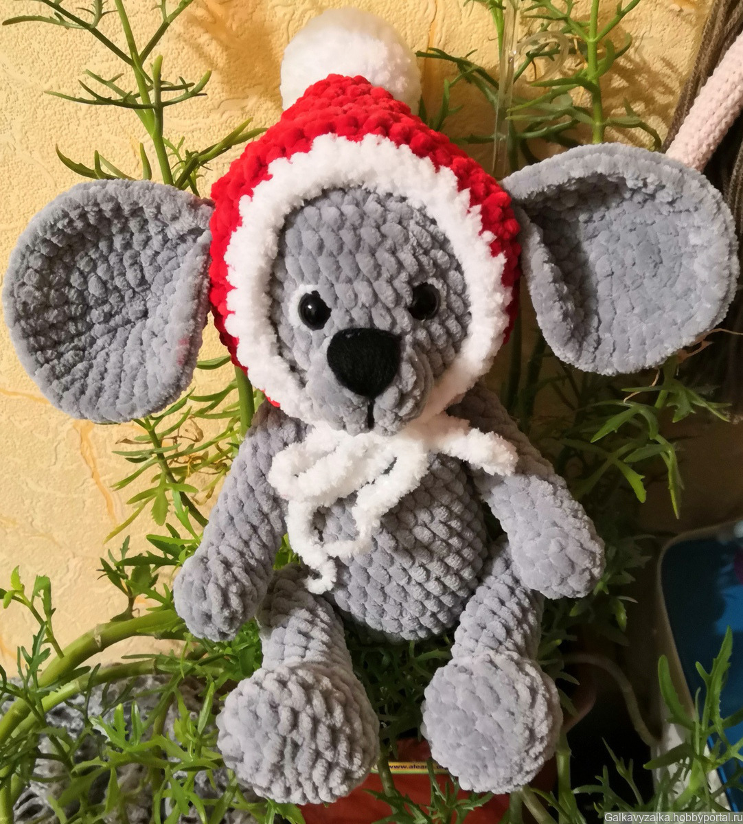 Плюшевая мышка, прекрасный подарок ребёнку на Новый год. Шапочка снимается. Лапки подвижны. Глазки и лапки на винтовом безопасном креплении.