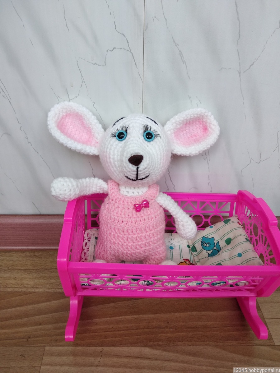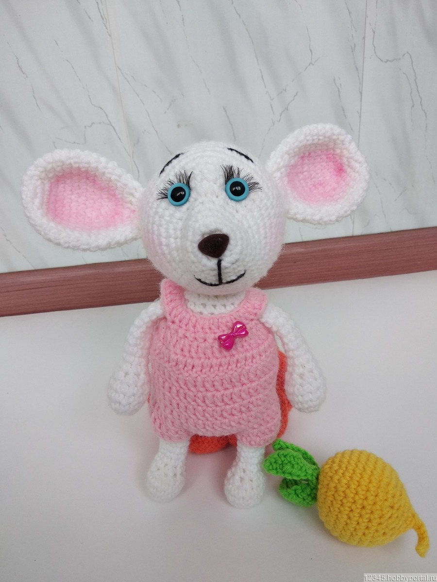 Мышонок выполнен из детской гипоаллергенной пряжи. Носик и глазки на безопасном креплении. Наполнитель холофайбер, бровки вышиты. Одёжка снимается.