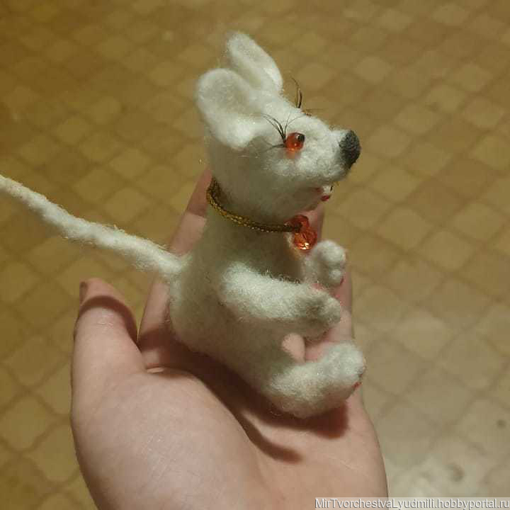Мышонок выполненный в технике сухого валяния из синтепона.