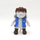 В жилетке синего цвета, на голове коричневая шляпа с полями. Жилетка и шляпа снимаются