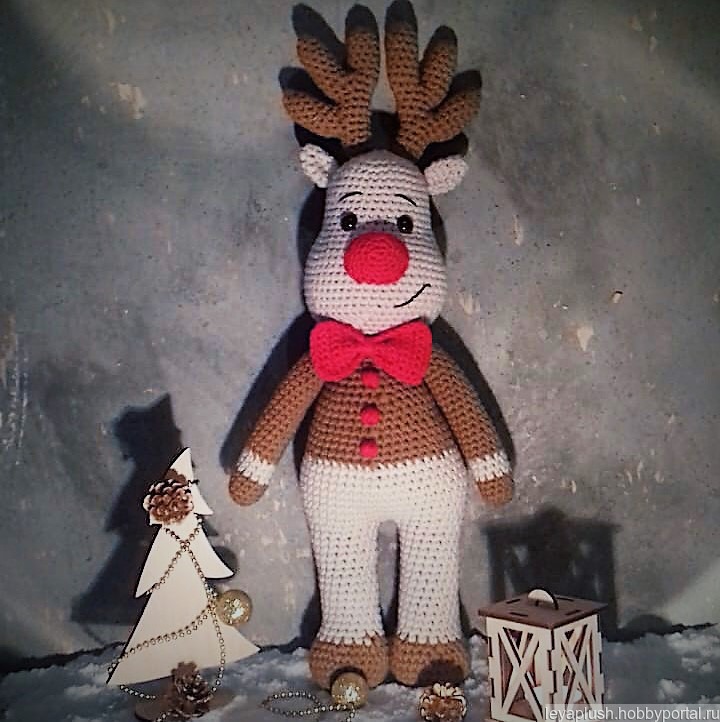 Олень из гипоаллергенных материалов. Глазки на безопасном креплении. Подходит не только в качестве подарка, но и для создания праздничного настроения при оформлении новогодней ёлки.