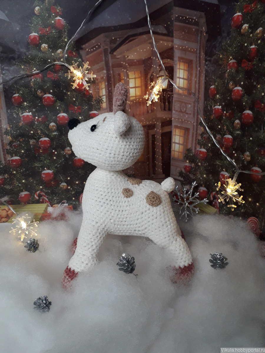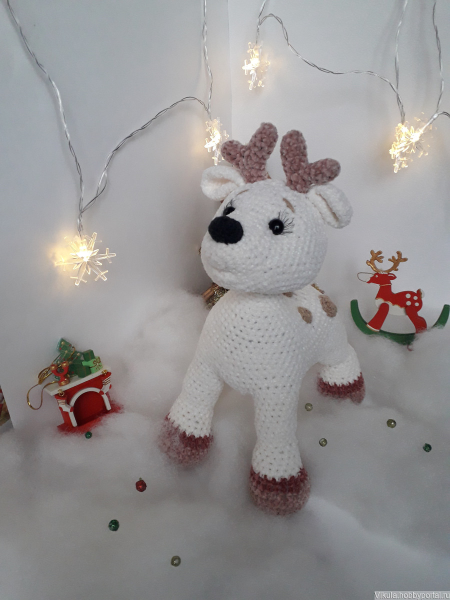 Белоснежный Олень связан из нежной велюровой пряжи. Глазки на безопасном креплении. Наполнитель хвлофайбер. Игрушка гипоаллергенна. Рост 25 сантиметров. Лучший подарок для подруги, сестры, девушки, ребёнка. Красиво упакую для Вас.