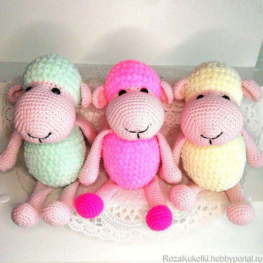 Цена за одну овечку. Мягкая, тактильная игрушка понравится и девочкам и мальчикам. Голова на шарнире, вертится в разные стороны. Глазки на безопасном креплении, все детали надежно пришиты. В наличии игрушка мятного цвета. По Вашему желанию могу связать в других цветах.
