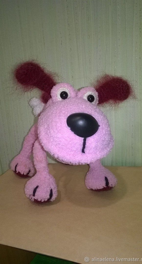 Озорной щенок будет приятным дополнением к подарке на Новый Год -ГОД СОБАКИ.Связан из мягкой пряжи Софти. Игрушка на проволочном каркасе.Наполнение синтепон.