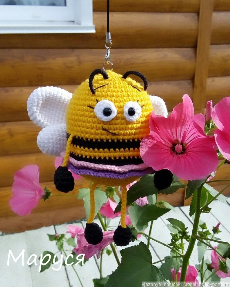 Пчелка крючком. Ростом около 10 см. Связана из гипоалергенной пряжи, хлопок с акрилом. По МК Ксении Пупыревой. Можно использовать как подвеску.