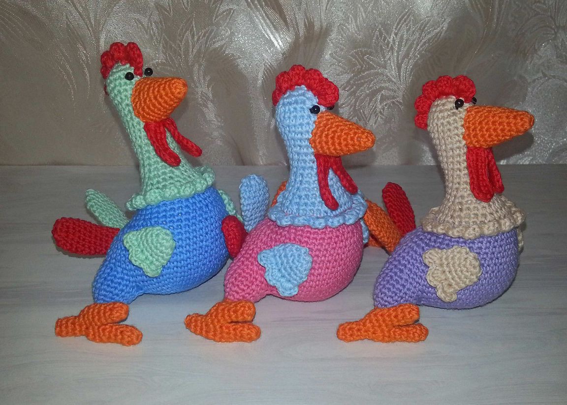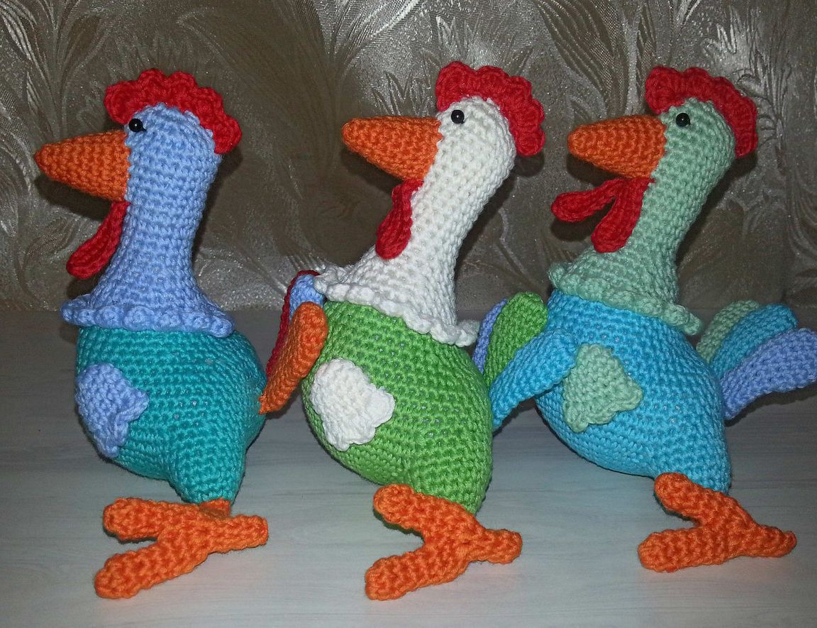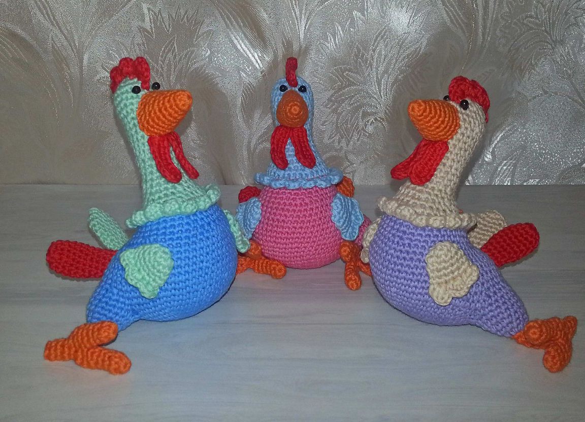 Петушки связаны из очень качественного хлопка. Символ 2017 года. Возможно изготовление в другой цветовой гамме. Замечательный подарок близким и друзьям на любой праздник и просто так. Игрушки, сделанные своими руками, хранят тепло и частичку души мастера.