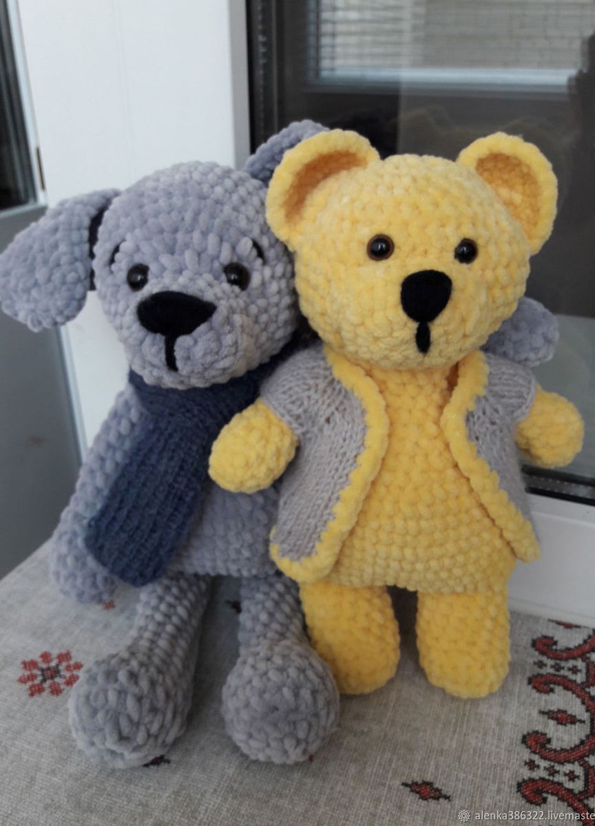 пластиковые глазки, наполнитель синтепух, плюш, пряжа детская