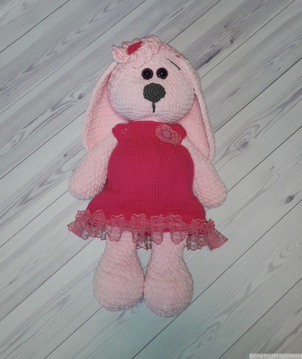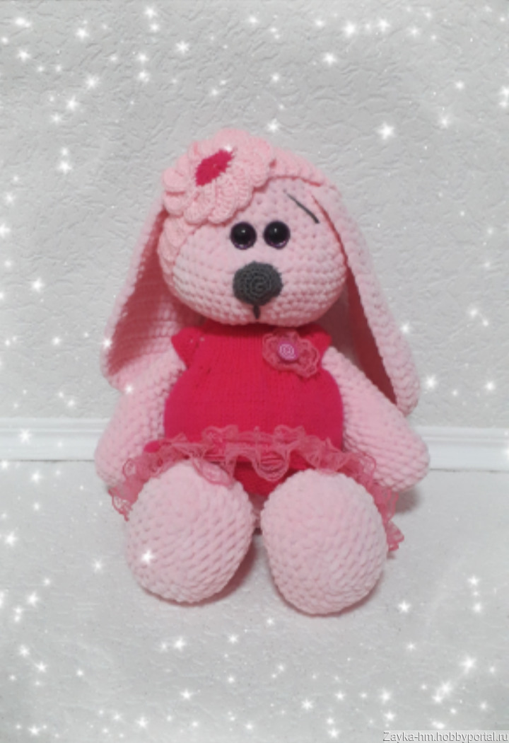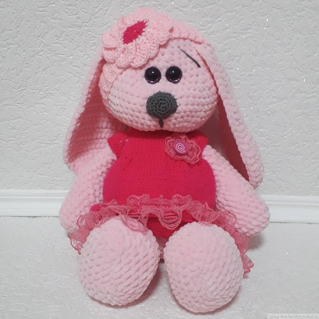вязаная игрушка, зайка, игрушка для сна, зайка крючком, плюшевая пряжа, зайка в одежде