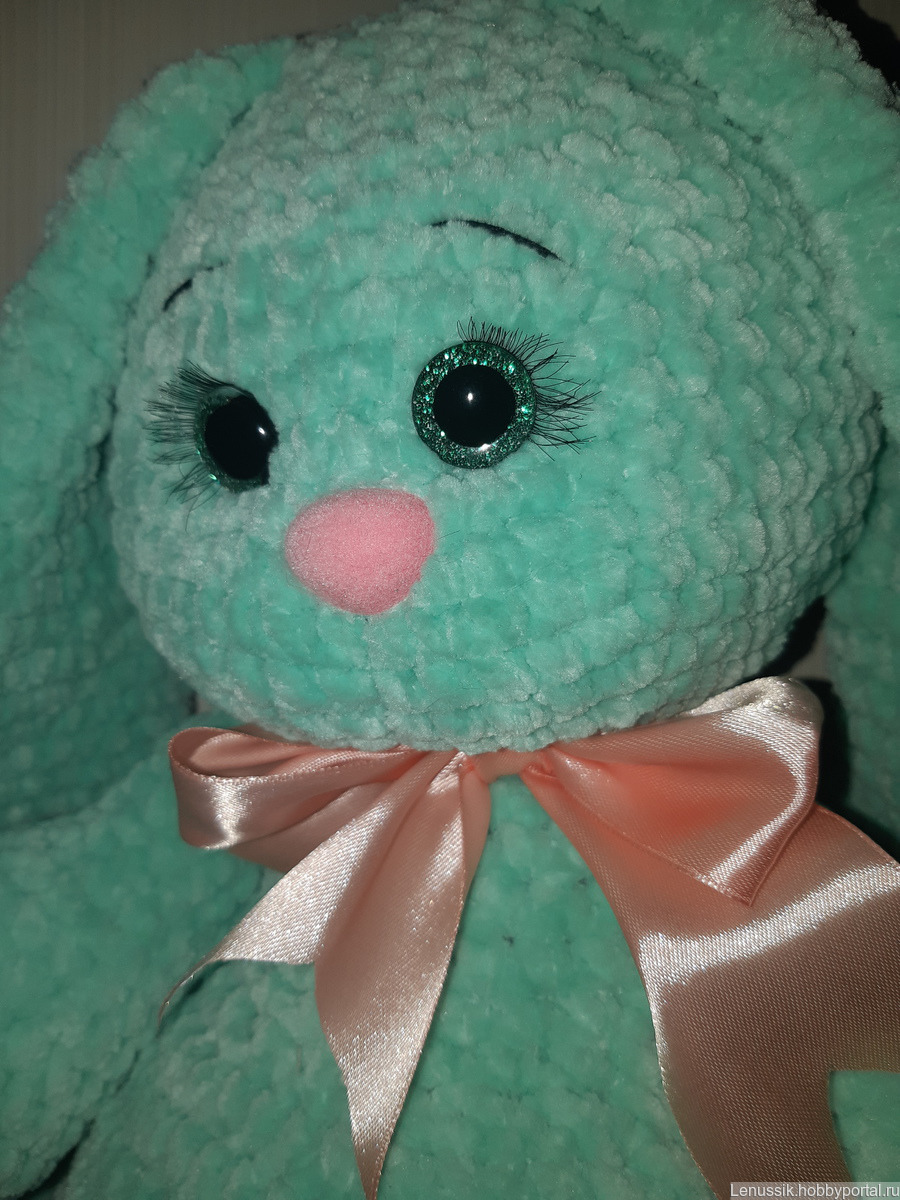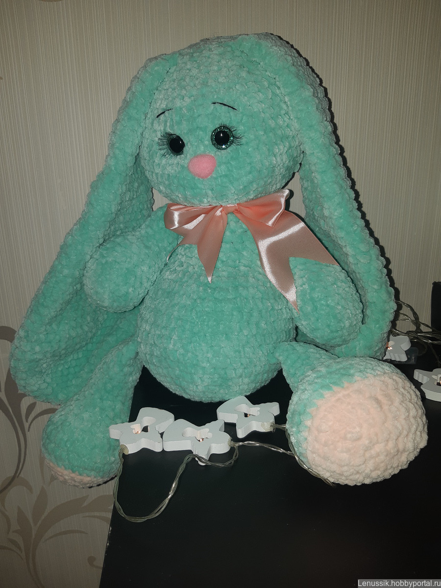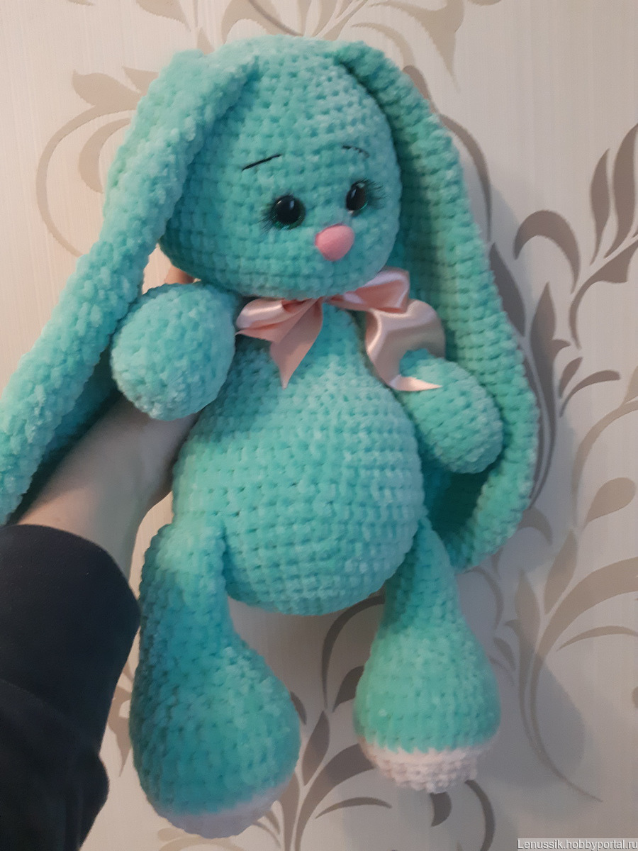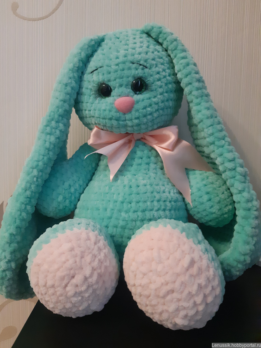 Зайка вязаный из гипоаллергенной плюшевой пряжи. Глазки и носик на безопасном креплении. Наполнитель холофайбер.