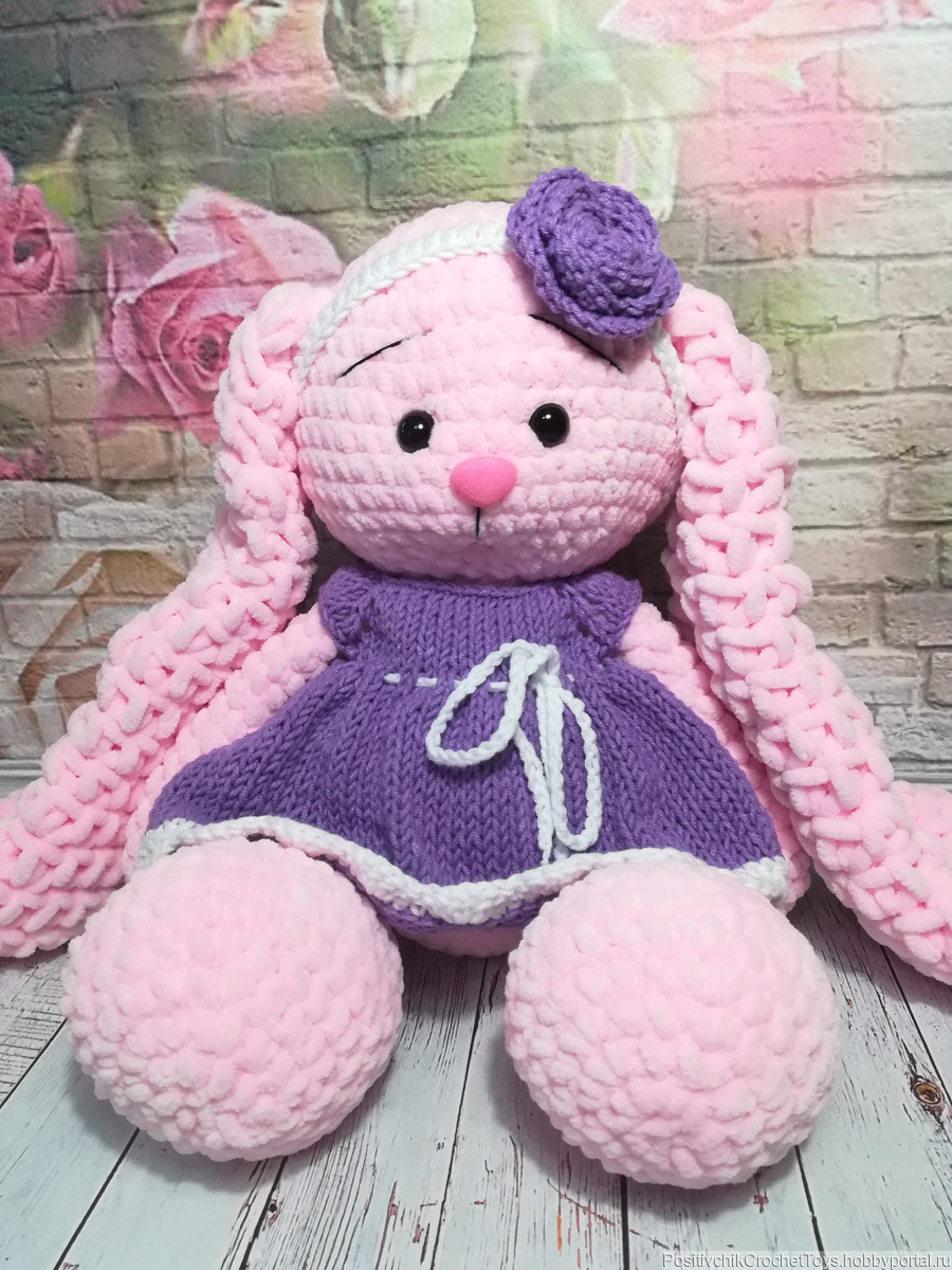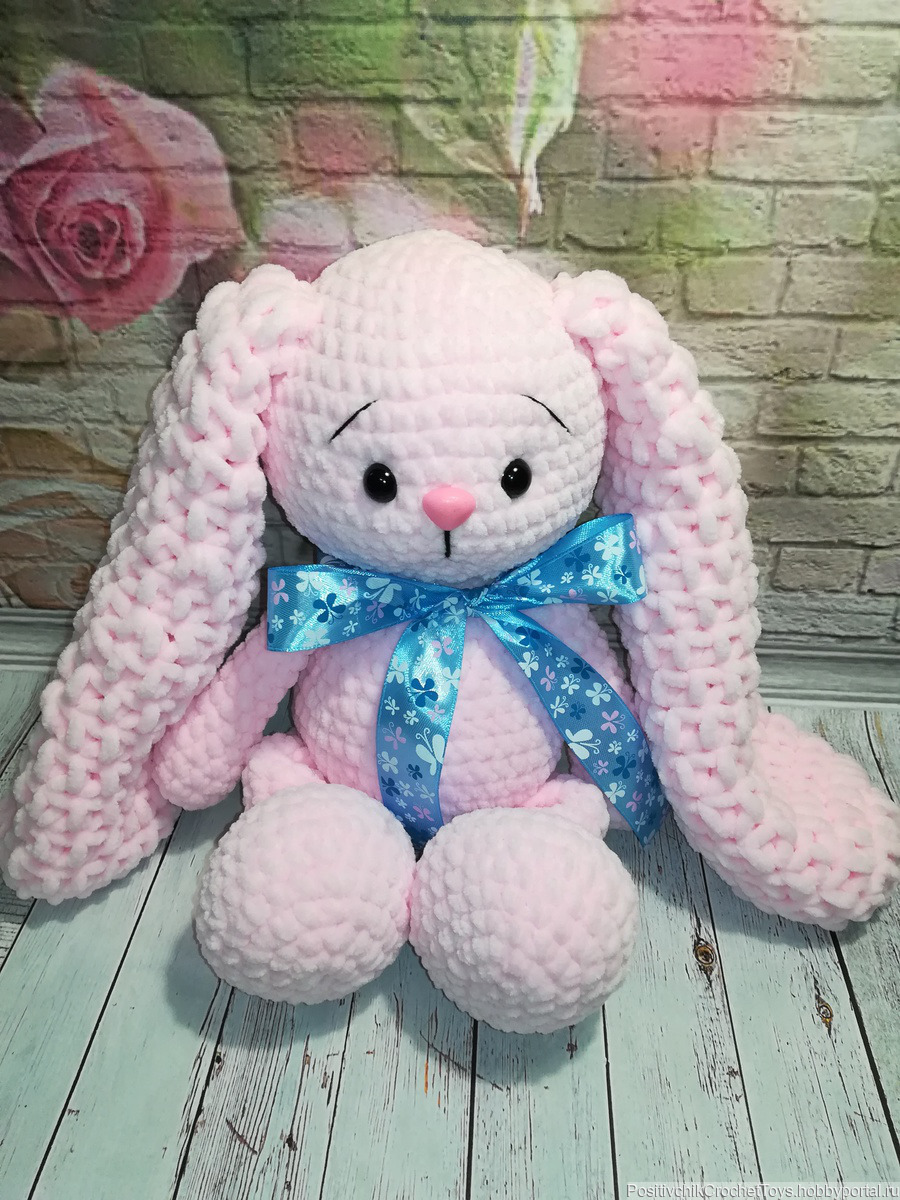 Плюшевый заяц с длинными ажурными ушами не оставит равнодушным Вашего ребёнка.