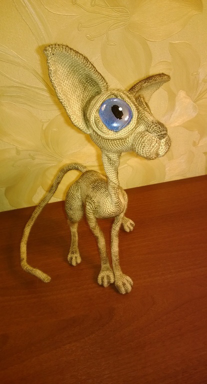 вязаная игрушка, ручная работа, бежевый, подарок на 8 марта, подарок, котенок, подарок на любой случай, подарок на 23 февраля, кот игрушка, вязание крючком, кот в подарок, лысый кот, сфинкс, кот вязаный, котенок вязаный, кот-сфинкс