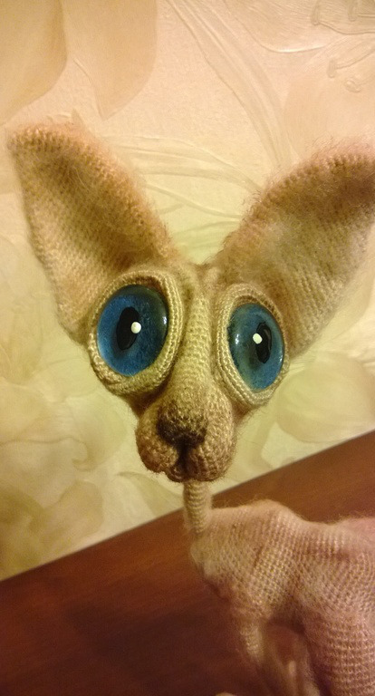 вязаная игрушка, игрушка, интерьерная игрушка, кот, бежевый, подарок, на заказ, лысый кот, игрушка вязаная крючком, сфинкс, финдус, стеклянные глазки, подарок на 1 апреля