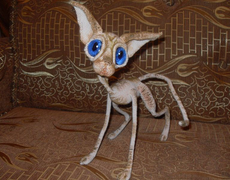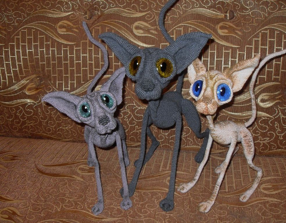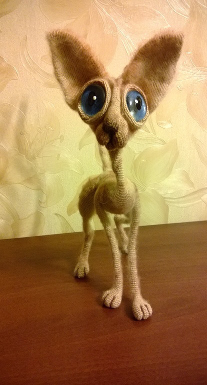 Сфинкс - лысый кот. Интерьерная игрушка,вязаная крючком. Полностью на проволочном каркасе - может принимать любые позы.