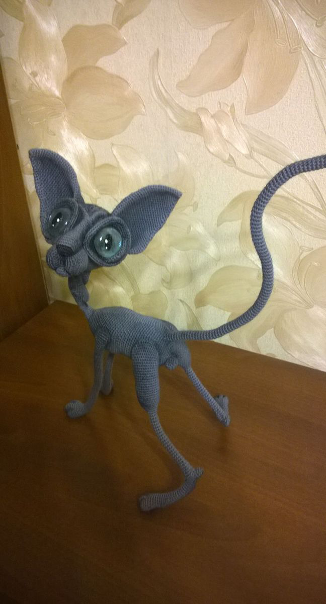 вязаная игрушка, серый, подарок на новый год, подарок на день рождения, кот, кошка, подарок на 8 марта, подарок, вязаная игрушка крючком, подарок на 23 февраля, подарок на 14 февраля, голубые глаза, темно-серый, кот в подарок, котенок игрушка, сфинкс, янтарный, подарок на рождество, кот сфинкс крючком, сфинкс крючком