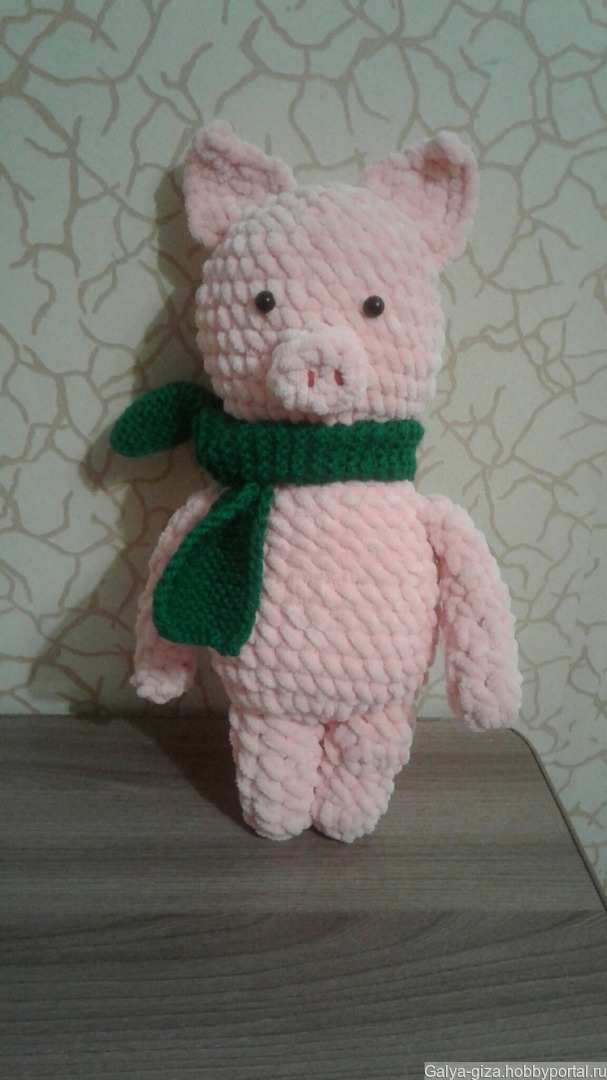 Зефирный поросенок. Вязаный спицами из пряжи велюр.